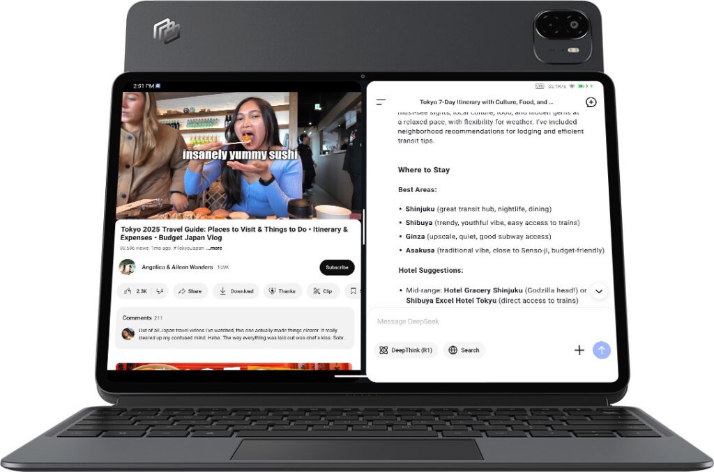 The other strong point is battery life. With a massive 15,000mAh battery — the largest ever in consumer tablet* — the Ultra Pad delivers all-day power and then some. When it’s time to recharge, 33W fast charging gets you back in action fast. You can use the device to stream, browse, play games and use apps all day without needing to scramble to get a charger. That makes it a good choice in the case of travel and school.