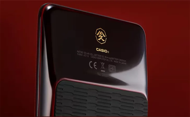 The surface is finished in a traditional Japanese technique of hand-laquerware to produce a glossy, black surface with a special shine. The framing of every key along with the front is of red accent color. The buttons are marked in gold. The screen presents navy blue numbers on nearly white background so as to produce the greatest possible contrast – the FSTN LCD is less reflective and has a higher contrast than most pocket calculators, according to Casio, due to a double coating.
