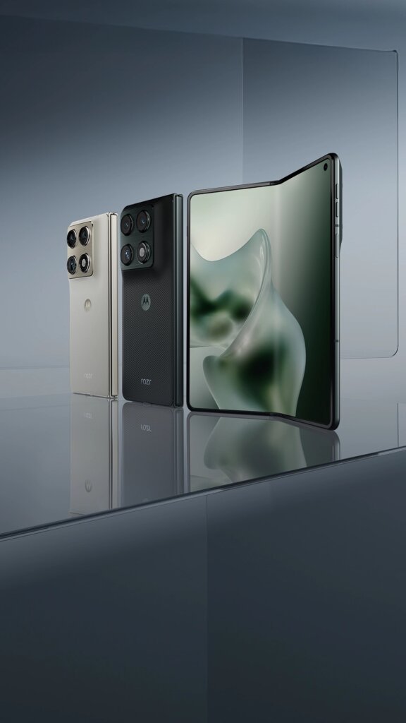 At CES 2026 Motorola stunned us by unveiling its first side-folding Razr Fold phone (Jan 5 announcement). Unlike past Razr flip-phones, this is a book-style foldable: a 6.6″ external display and an 8.1″ inner display. It even supports a stylus for inking on that big screen. The rear camera array is very impressive: three 50MP cameras (main, ultrawide/macro, and a 3× periscope telephoto) plus a 32MP outer selfie cam and 20MP inner selfie cam