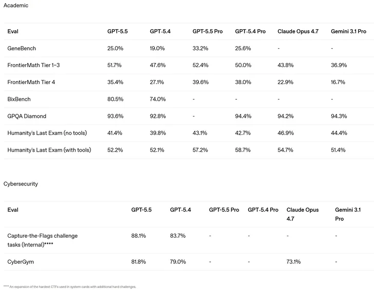 OpenAI GPT 5.5 and 5.5 Pro have launched with enhanced intelligence and greater cybersecurity threats, requiring enhanced safeguards. Versus Claude Opus 4.7, GPT 5.5 / 5.5 Pro demonstrates better tool use, hacking skills, academic problem solving, and abstract reasoning.