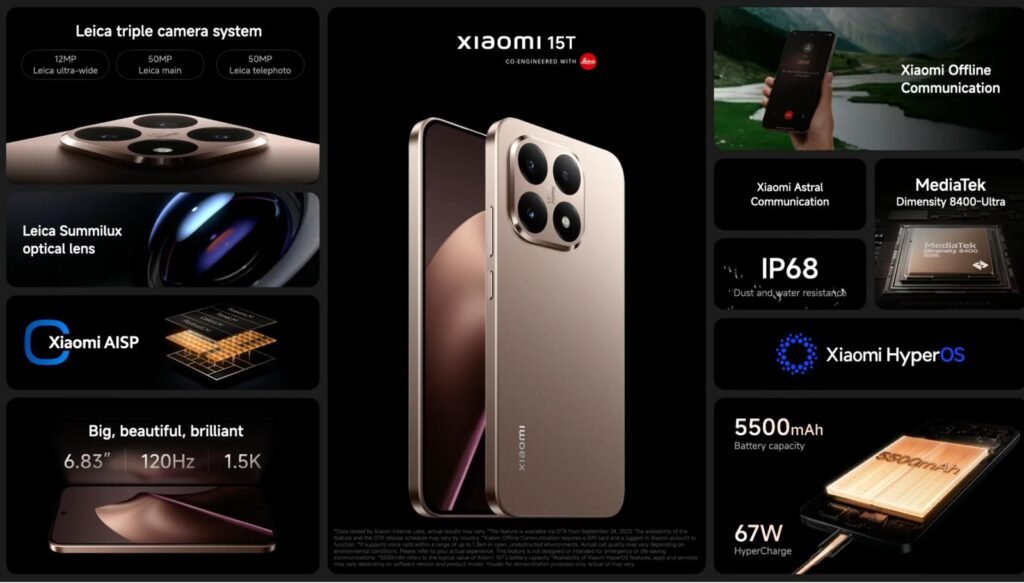 On Sept 24, 2025, Xiaomi held a global launch event in Munich to unveil the new Xiaomi 15T series. The lineup includes two models – the Xiaomi 15T and the higher-end 15T Pro – both positioned as “sub-flagship” phones. The event highlighted a “Pro-grade” Leica camera experience (including Xiaomi’s first 5× optical telephoto lens on a T-series phone) and a fresh “golden” design theme with a matte metallic finish.